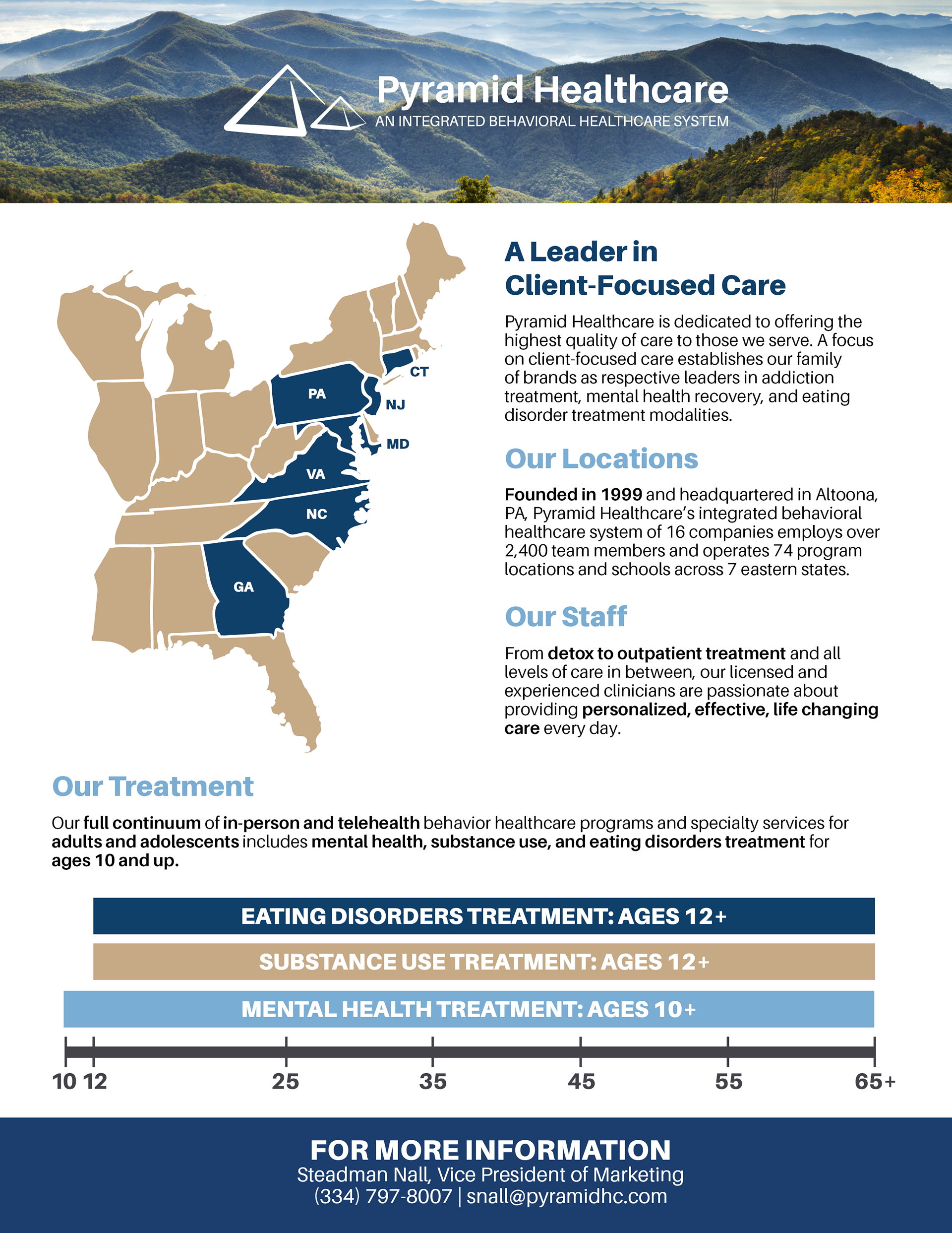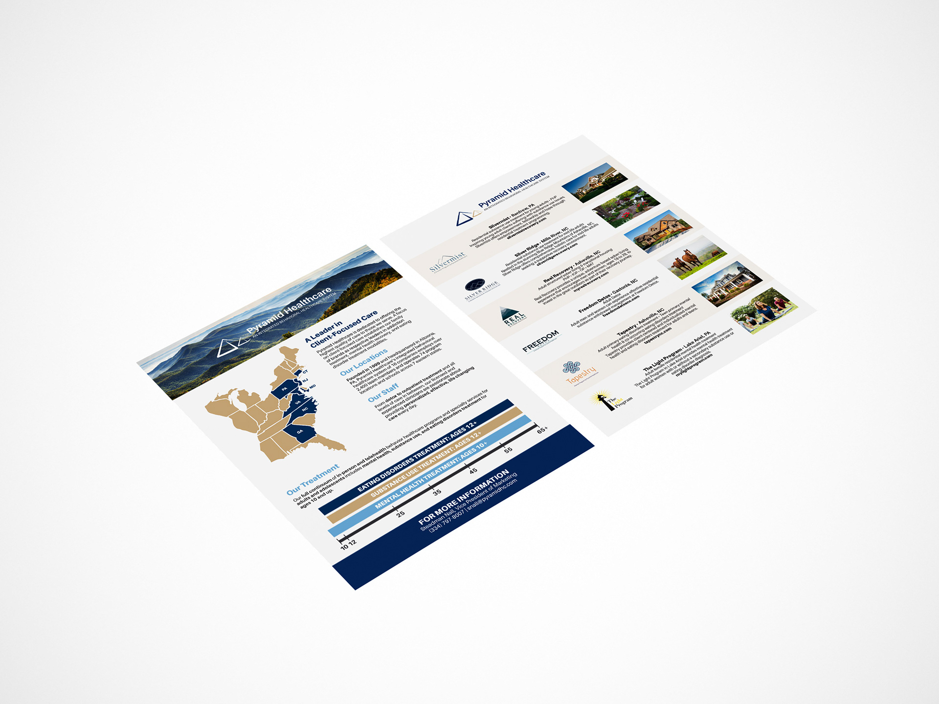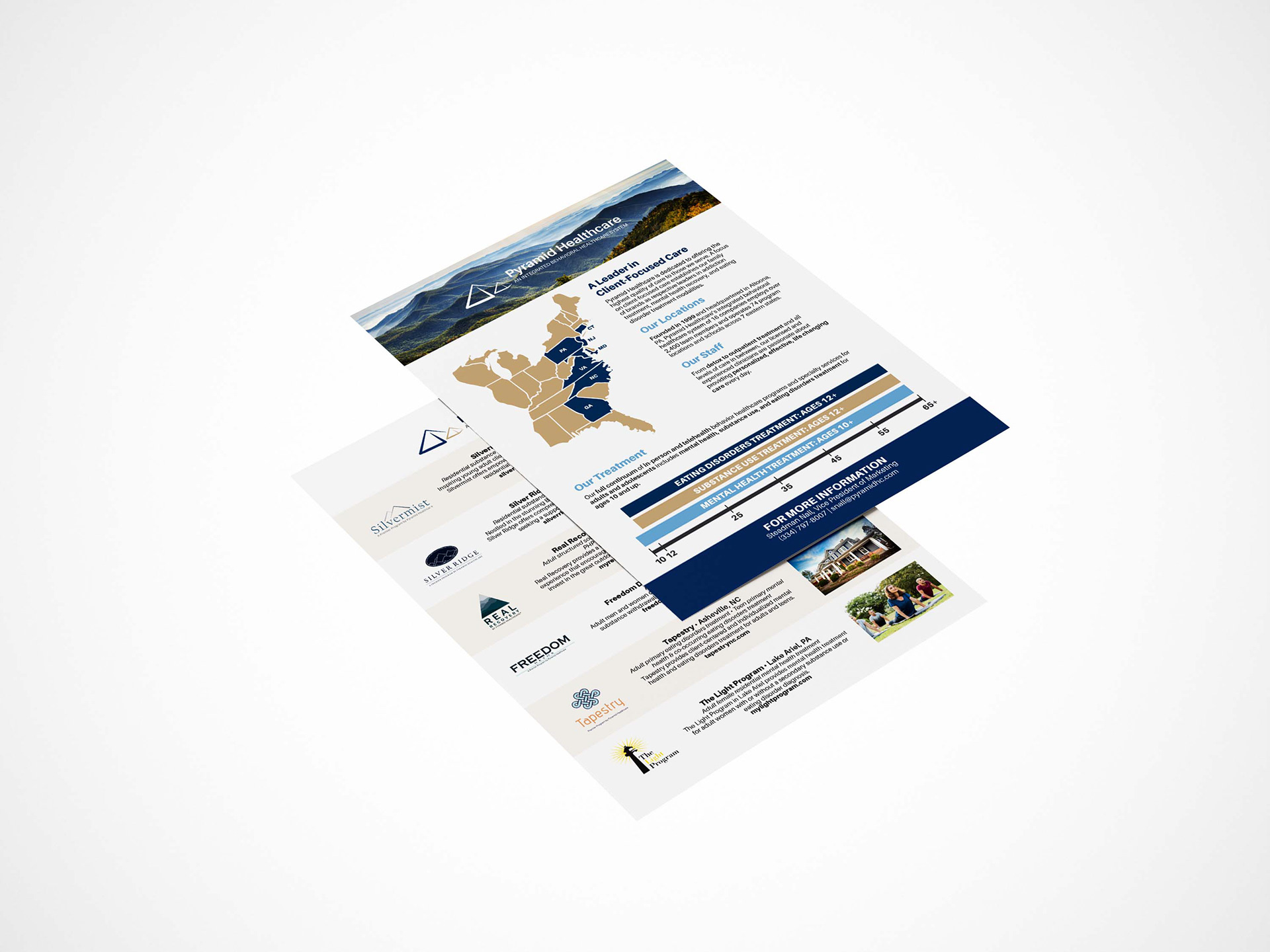 Informational flyer about company wide offerings on the front and individual brand specific information on the back.